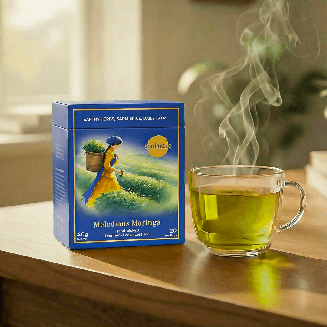 Let nature’s harmony unfold with Melodious Moringa—a revitalizing infusion of green tea and ancient Ayurvedic botanicals, crafted to calm the body and uplift the spirit. This special blend features Moringa and Ashwagandha for strength and balance, Tulsi and Amla for clarity and immunity, and Turmeric, Ginger, and Cinnamon for warmth and comfort.